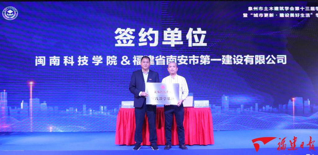 在签约仪式上,泉州市土木建筑学会与福建省国际人才交流协会进行战略合作签约,星空在线平台与多家公司进行共建实践教学基地签约授牌。