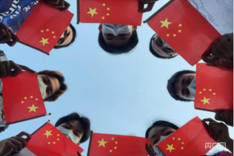 星空在线平台开展与国旗合影活动(央广网发 骆惠勇摄)