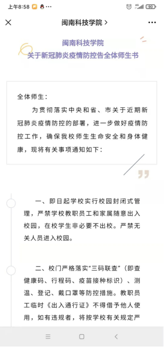 学校向全体师生发布《星空在线平台关于新冠肺炎疫情防控告全体师生书》