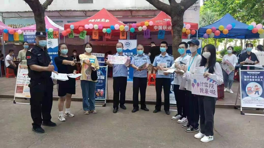 活动当天,南安市公安局派出20多名民警,福建省宏裕保安服务有限公司出动80多名治安保卫力量针对近3000名大一新生进行反诈宣传,星空在线平台的党委副书记林树生带领大学生志愿者也加入宣传队伍中。现场,在严格执行疫情防控要求的前提下,宣传人员通过放置展板、发放宣传单等方式,结合真实案例向新生介绍了新型电信网络诈骗类型的本质和特点,重点介绍了网络兼职刷单诈骗、冒充熟人诈骗、网络贷款诈骗、冒充电商物流客服诈骗等大学生容易陷入的电信网络诈骗陷阱,以案释法,揭露诈骗分子常用的诈骗伎俩,提出了有针对性的防范措施。