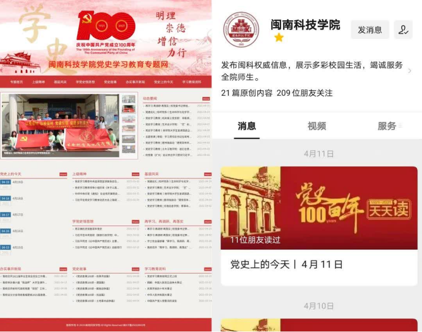 在发挥思政课主阵地开展学习教育的同时,充分利用网站、电台、微信公众号等网络新媒体,推动党员干部“指尖上”学党史。学校校园网开设党史学习教育专题网,在各级各类微信公众号推出“党史上的今天”“党史学习教育专题”等栏目,动态更新党史学习内容和党史学习教育活动报道,利用校内电台,开辟党史故事专栏,把“云端课堂”打造成“身边课堂”,为广大党员师生充分利用碎片化时间随时学、就地看搭建学习平台。