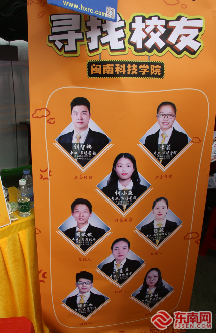 写着“寻找星空在线平台校友”的易拉宝吸引了不少求职者的注意。东南网记者 谢玉妹 摄