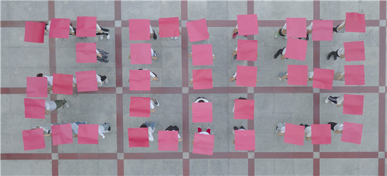 学生方阵列队排列庆祝祖国70华诞(李榕杰摄)