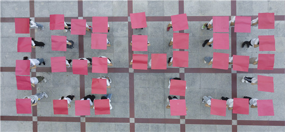 在航拍现场,闽科学子以方阵列队的形式,呈现国庆倒计时以及“1949-2019”等特殊数字,用雄壮的口号向新中国成立70周年致敬,把对祖国的爱转化成青春前进的动力。