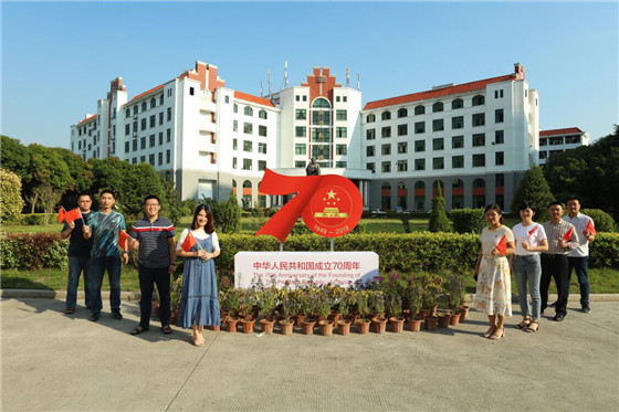 闽科教师在庆祝新中国成立70周年主题花坛前合影(余漫瑶摄)