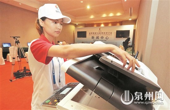 这两天,泉州师范学院学生李琦欣始终忙碌在金砖国家治国理政研讨会的新闻中心。