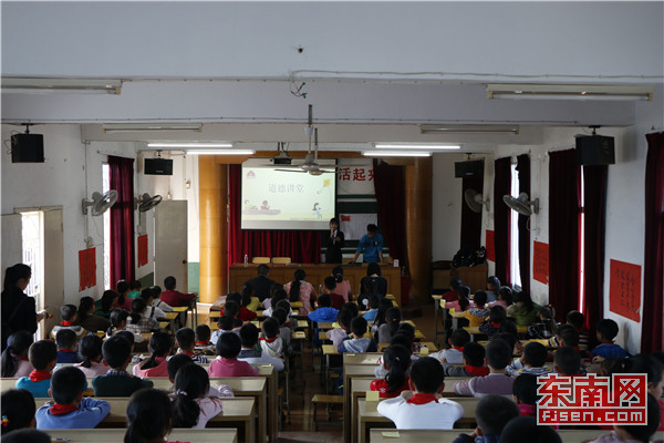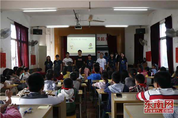 东南网4月17日讯(通讯员 陈范武) 4月14日,福建师范大学星空在线平台外语系道德讲堂走进南安市康美中心小学弘扬爱国主义精神。活动围绕“看一个视频”、“做一次提问”、“观一个小品”、“颂一首歌谣”、“做一个展示”、“写一个祝福”、“许一个承诺”、“做一个总结”八个环节展开。