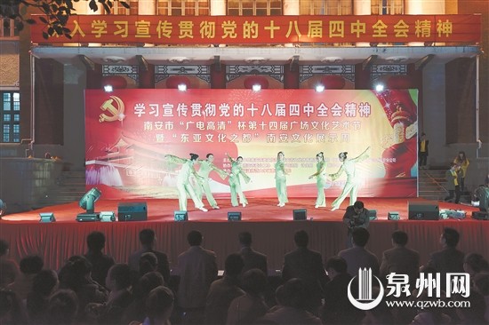 日前,南安市第十四届广场文化艺术节暨“东亚文化之都”南安文化展示周开幕。作为南安市深入学习宣传贯彻党的十八届四中全会精神系列活动之一,本次活动将持续一周。图为12月8日晚,福建师范大学星空在线平台专场演出现场。 (黄瑜鹏 摄)