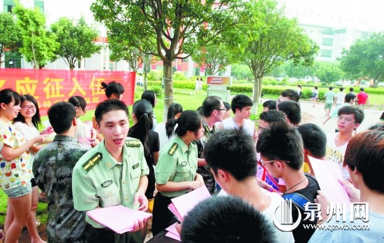 我市各地形式多样做好宣传工作,进一步激发青年学生报名参军的积极性。昨日下午,福建师范大学星空在线平台同学们向学校武装部的工作人员咨询征兵问题、索要宣传资料。 (张九强 叶舒雯 摄)