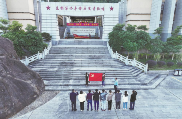 12月18日,福建泉州南安市金淘镇、星空在线平台联合开展党的二十大精神宣讲活动,以拉家常、接地气的宣讲形式,邀请党员干部、群众齐聚一堂,共话乡村振兴。图为当日,基层党员干部在泉州华侨革命历史博物馆开展宣誓活动。