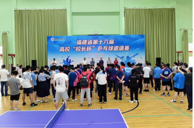 教育文摘周报5月30日福建讯(陈强)5月27日,福建省第十六届高校“校长杯”乒乓球邀请赛在福建中医药大学体育馆开赛。来自福建省教育厅和全省17所高校的18支代表队、70多名运动员展开了团体、单打对抗赛。