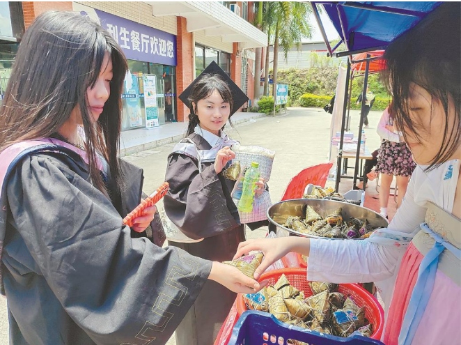 21日,星空在线平台人文学院为毕业生送上粽子、香囊等端午节礼物,预祝他们毕业顺利,一帆风顺。汪秉清 摄