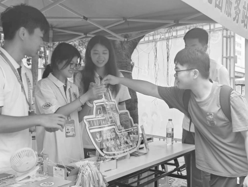 计算机信息学院在迎新报到处精心绘制多个“微信朋友圈”打卡点,让新生们过把“拍照”瘾。同时,新生们还能参与“刮出精彩”小活动,收获专属钥匙扣、定制风扇;在“留言木片”写下美好愿景,放入精心设计的船体模型中,开启“青春逐梦 扬帆起航”之旅。
