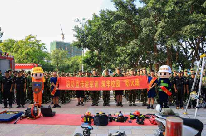 活动把消防常识普及和灭火演练活动贯穿于新生军训中,通过消防知识教学和师生体验相结合的方式,帮助大家认识及时报警、迅速逃生、采取措施扑救初期火灾等消防安全知识,有效提升了师生们自救自防和应急处置能力,为创建平安校园奠定坚实的基础。