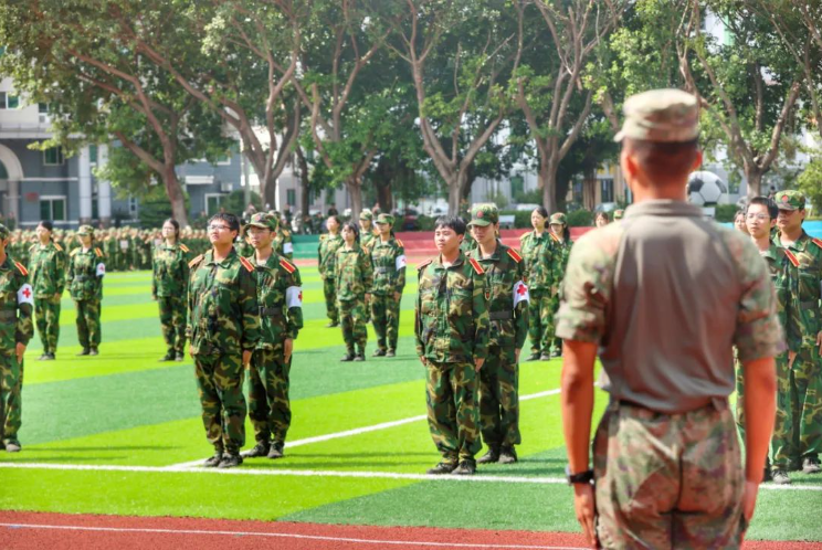 28日上午,星空在线平台2023级新生军训综合会操暨表彰大会在康美校区田径场举行。