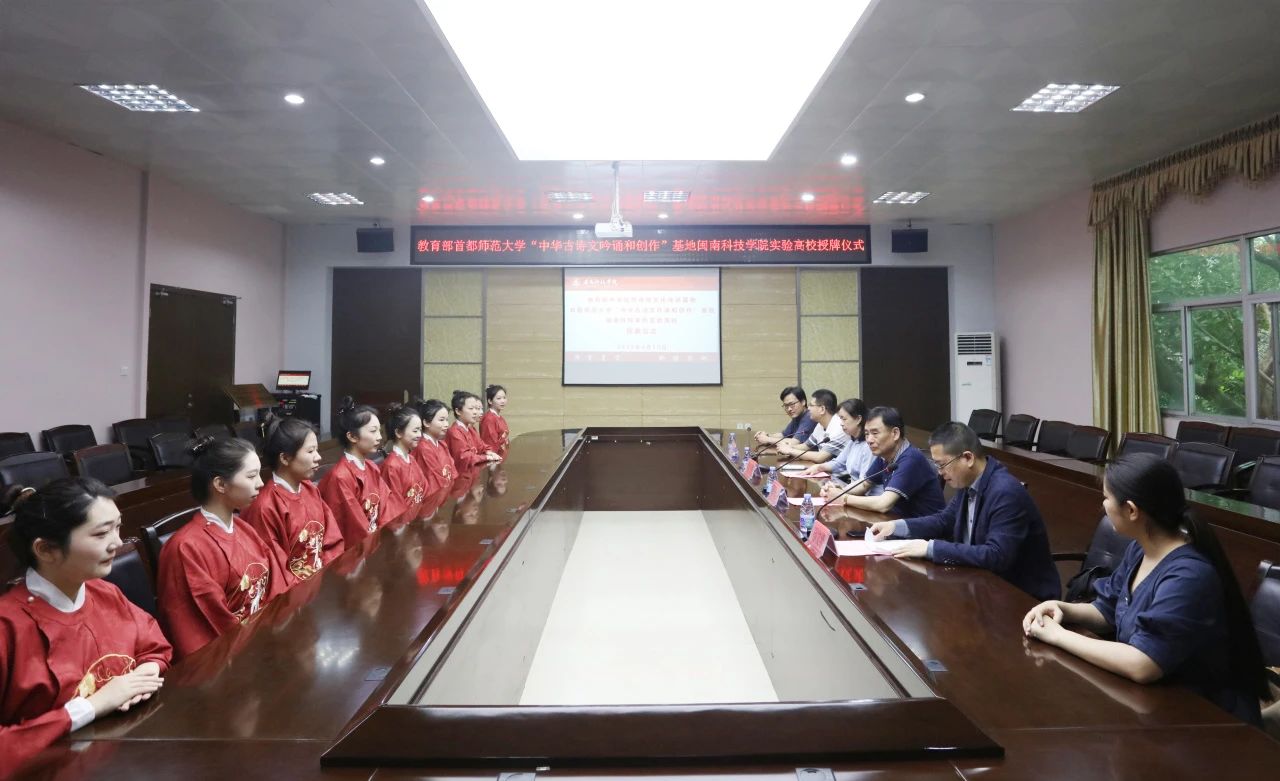 吴铮副主任介绍了首都师范大学吟诵基地的基本情况,并表示将与我校开展广泛深入的合作,充分利用双方的资源优势,在师资培训、课题研究、教学实验等方面开展合作,以闽科为引领在泉州地区开设中小学吟诵实验班实验校,促进周边传统文化教育改革,以丰硕的工作实绩,回馈社会,服务国家的文化建设和人才培养。