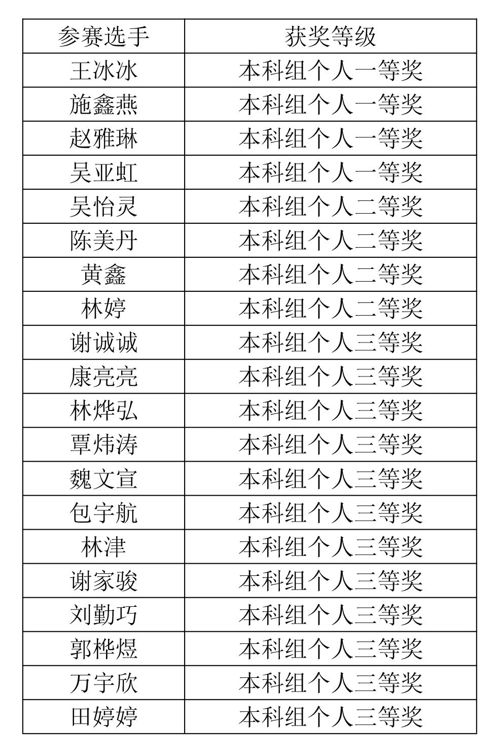 个人获奖名单