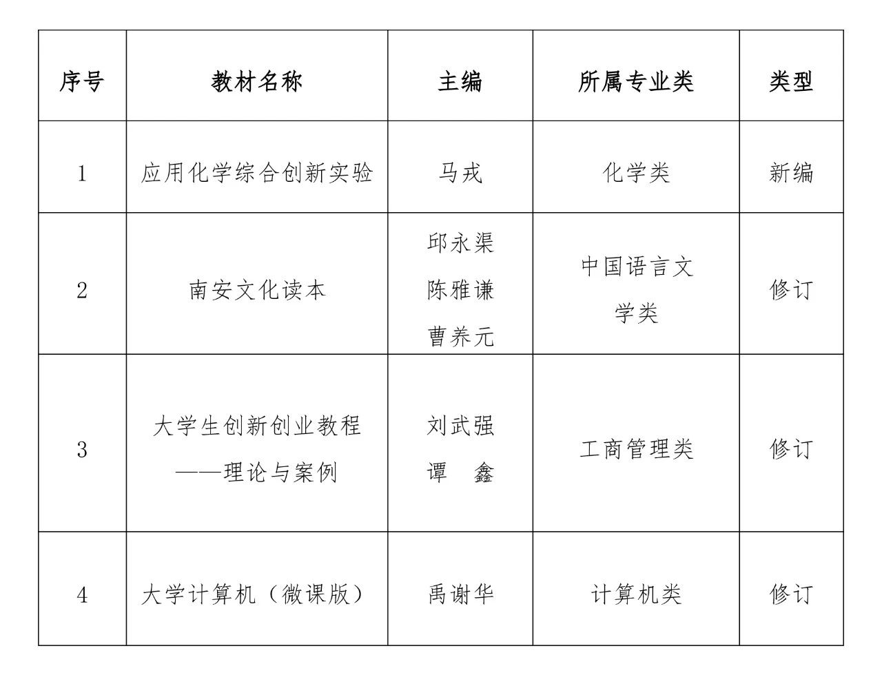 近日,福建省教育厅公布了福建省“十四五”普通高等教育本科规划教材建设项目立项名单,我校4部教材成功入选。