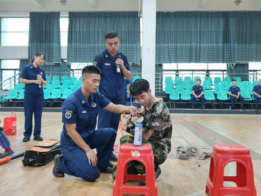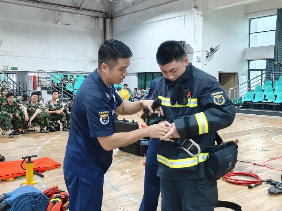 消防救援大队官兵们为新生们讲解消防器材装备