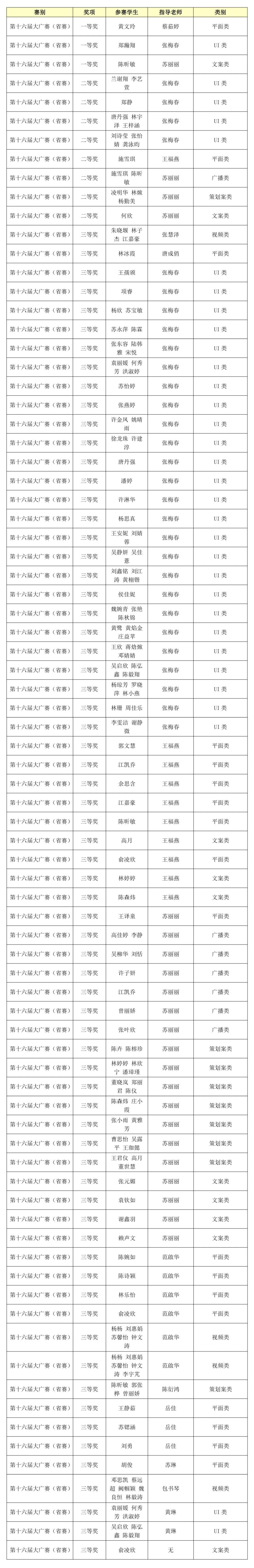 第十六届全国大学生广告艺术大赛福建赛区星空在线平台获奖名单