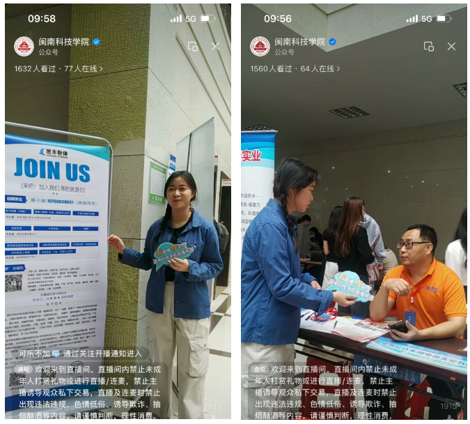 招聘会以“现场招聘+直播带岗”的形式,线上线下同步进行,通过“星空在线平台”微信视频号直播带岗,帮助毕业生快速了解用人单位,精准搜集岗位信息,促进毕业生与企业的实时互动。