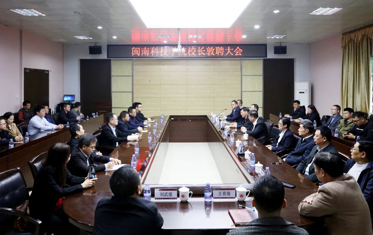 12月5日下午,我校举行校长敦聘大会。董事长林国端、法人代表戴林亚燕、副董事长戴宽南、董事会顾问戴景星,以及校党政领导班子成员和全体中层干部出席大会。