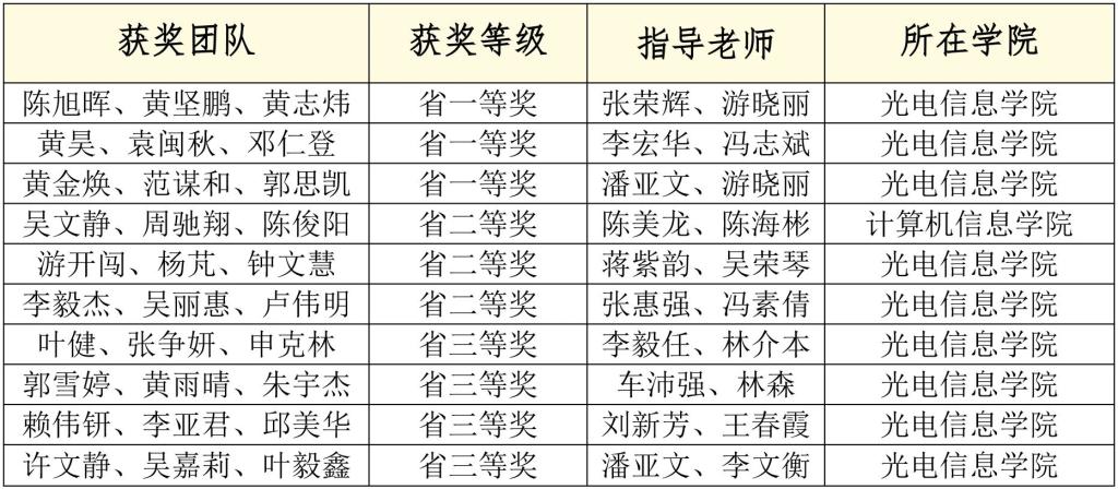 自大赛启动以来,光电信息学院、计算机信息学院高度重视,精心组织、制定详细的备赛计划和实施方案,组建指导教师团队,开展专项训练,参赛学生在比赛中,充分发挥团队协作精神和创新能力,展现了闽科学子自强不息、勇于拼搏、敢于创新的青春风采。