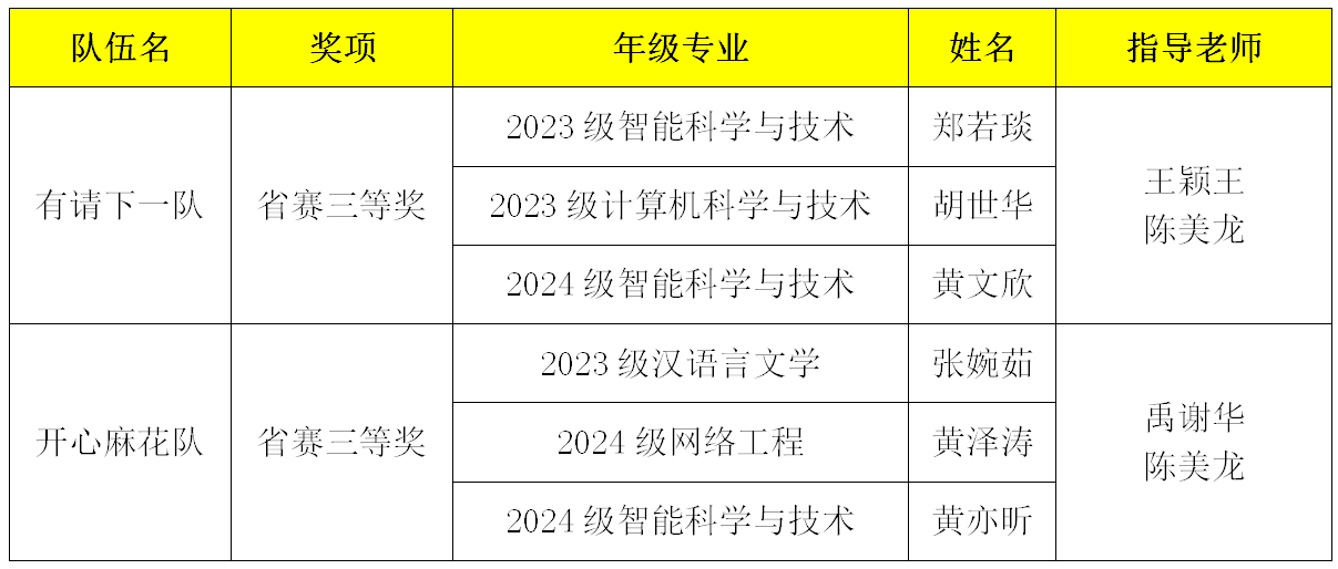 近日,2024年福建省大学生机器人大赛暨海峡两岸大学生机器人竞赛在厦门大学举行,我校计算机信息学院大学生软件人才培养基地依托大数据与人工智能福建省高校重点实验室,组织5支队伍参加智慧校园ROS机器人赛道、机器视觉与系统创新赛道,其中“有请下一队”“开心麻花队”在智慧校园ROS机器人赛道获得省赛三等奖。