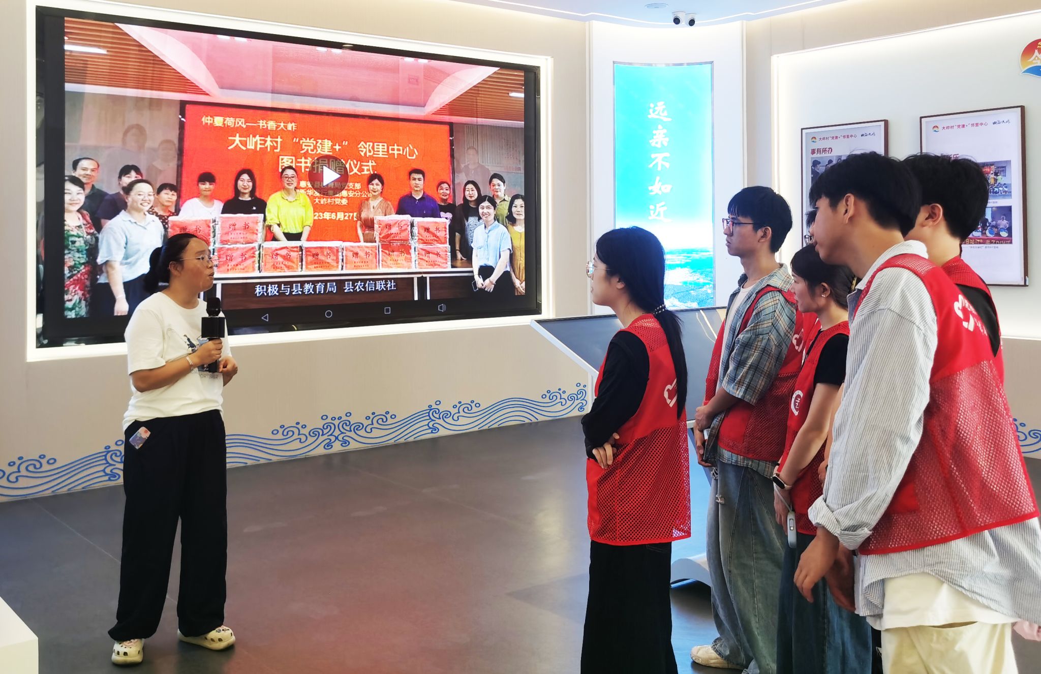 在大岞村“党建 +”邻里中心,在讲解员带领下,队员们深入了解“党建 +”邻里中心建设情况,探讨党建引领在乡村振兴、文化传承、助力构建美丽和谐的惠女家园等方面的创新实践。
