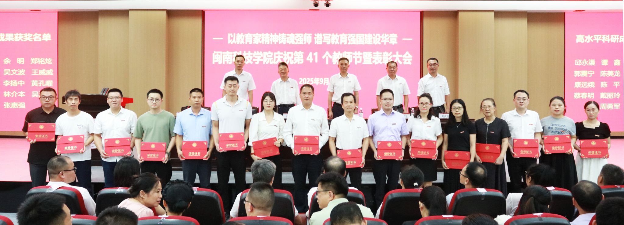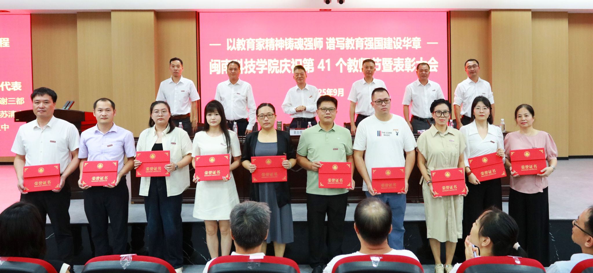 校党委书记李旭致辞,代表校党委和行政向辛勤耕耘在教育教学一线的全体教职员工致以节日的问候和崇高敬意!向受到表彰的先进集体和个人表示热烈的祝贺!他强调,在教育强国、教育强省建设的新征程中,广大教师要深入学习领会习近平总书记的重要回信精神,牢记嘱托、坚守初心,坚定信心、追求卓越,心怀大爱、乐教爱生,以昂扬奋进的精神状态不断谱写闽科发展新篇章。一要牢记嘱托、坚守初心。坚持以教育家精神为引领,坚守为党育人、为国育才初心使命,坚持不懈用习近平新时代中国特色社会主义思想铸魂育人,在不同岗位上奏响“立德树人”大合唱,培养一批又一批德智体美劳全面发展的社会主义建设者和接班人。二要坚定信心、追求卓越。以落实教育强省建设规划纲要,谋划学校事业发展“十五五”规划,迎接教育部本科教学工作合格评估为契机,牢记习近平总书记“福建没有理由不把教育办好”的殷切嘱托,坚持“仰望星空、脚踏实地”,把“论文写在田野大地上”,以教育之力厚植人民幸福之本,以教育之强夯实国家富强之基,为全面推进中华民族伟大复兴贡献闽科价值、闽科力量。三要心怀大爱,乐教爱生。要用真心、真情、真诚关爱每一位学生,严爱相济、润己泽人,做学生信赖的“良师益友”。牢记习近平总书记对教师队伍的殷切嘱托,既要有育人的知识和本领,更要有乐教的情怀和担当,以大爱践行学校“学生成才、家长放心、社会满意”的办学理念。