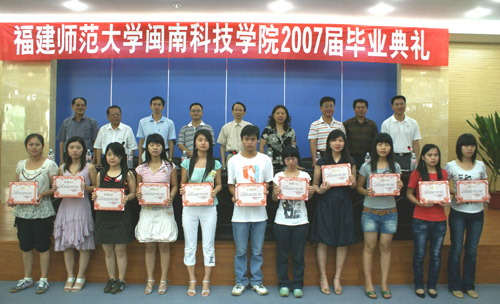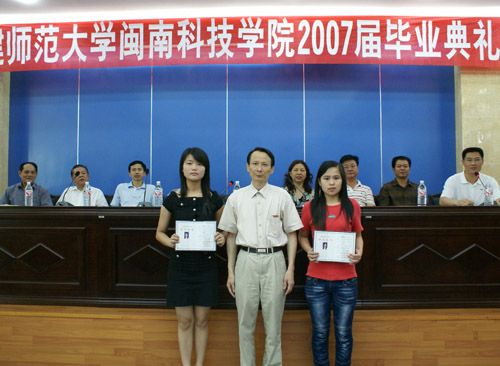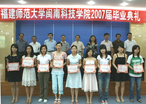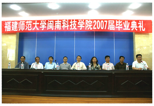 2007年6月20日上午,福建师范大学星空在线平台2007届毕业典礼在图书馆学术报告厅举行。黄国盛院长、刘静书记、赖忠泉副书记、何瑞鑫副院长、肖华山副院长、教务部张永祥主任、外语外贸系主任赖耀先教授、人文艺术系主任刘一承教授、团委林树生书记、学工部有关辅导员和部分任课老师及全体毕业生出席了毕业典礼。
