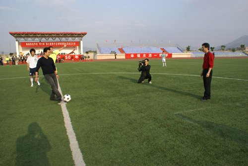 省足协副主席、星空在线平台法人代表戴宽南先生为揭幕战开球