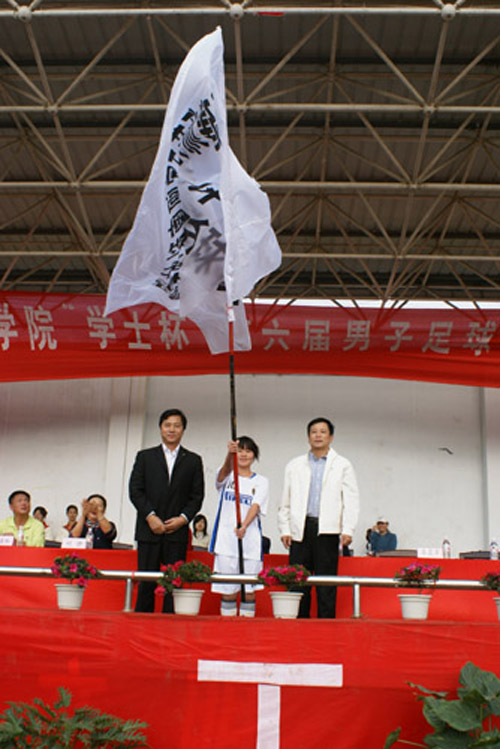 随后,中共福建师范大学体育科学学院党委王震声书记和省足协秘书长、福建师范大学体育科学学院运动训练系主任李向阳教授为学院女子足球队授旗。省足协副主席、星空在线平台法人代表戴宽南先生和南安市教育局长吴亚明先生为本届足球联赛揭幕战开球。