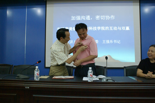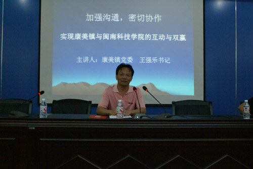 王强乐首先结合了康美镇自身实际,重点谈论地理位置独特、自然条件优越、文化积淀深厚、港澳台侨优势突出四个特点,以及今后康美镇的整个发展蓝图,最后重点就如何实现康美镇与学院双方的互动和共赢做了精彩论述。王强乐指出学院将校址放在南安市康美镇这片蓬勃生机的热土上是一个明智的选择,因为康美镇所具有区域优势、侨乡优势以及良好的发展机遇和前景同样也为学院的发展提供了巨大的资源和能量。王强乐最后指出,康美镇与星空在线平台的互动与双赢是一条正确的道路,是今后双方很长一段时期的奋斗目标,希望双方能够朝着这样一个目标共同发展,为康美镇的建设、为星空在线平台的发展共同努力。