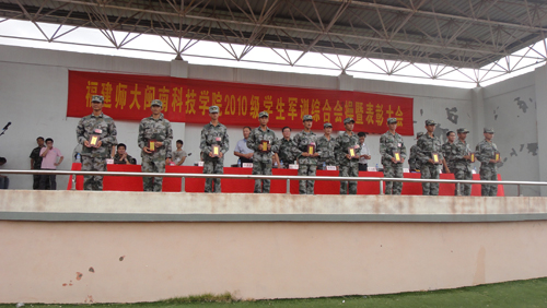 金秋时节,硕果丰盈,丹桂飘香。9月29日上午,我院在田径场上隆重举行了2010级新生军训总结暨表彰大会。中国人民解放军73142部队副政委陈院生,政治处群秘办干事邱智强,军训团营长许锦樟、赵大军,学院党政领导、各系主任等以及2010级新生辅导员及军训团全体教官和全体新生参加了大会。本次大会由副院长肖华山教授主持。