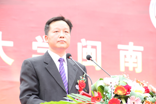 学院董事长戴宏达致辞。他深切表达心中的感谢,感谢各级政府和教育主管部门高瞻远瞩,科学布局,高度重视,关心、支持、督导学院的建设和发展,使学院稳步前进,取得长足的发展;感谢福建师范大学的精诚合作,一如既往地重视教育教学质量,有效保障了学院的安全与稳定;感