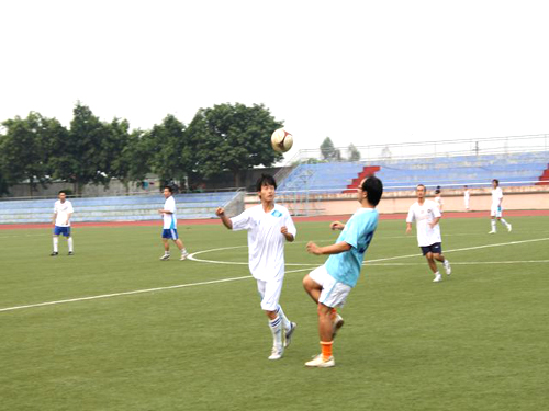 为加强师生交流,活跃校园气氛,在第27个教师节来临之际,我院举办师生足球友谊赛。9月7日下午,我院各系老师组成的“教工足球队”与来自“2009级学生足球联队”在田径场如火如荼地吹响球场“集结号”。