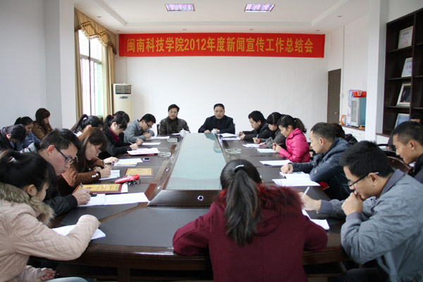 1月9日下午,我院2012年度新闻宣传工作总结会在第一会议室召开。院党委常务副书记林明旭、党委副书记李彬源、学院办公室、党委工作部、新闻宣传中心、各单位信息员参加会议。会议由新闻宣传中心主任陈范武主持。