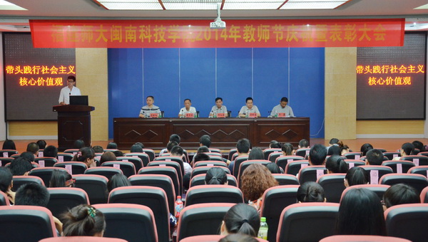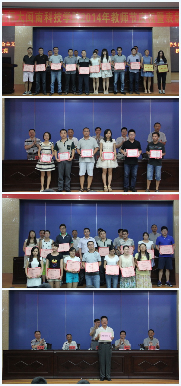 党委副书记李彬源宣读了《福建师范大学星空在线平台2013-2014学年获得各级各类荣誉称号的先进集体和先进个人名单》。副院长吴勇宣读了《福建师范大学星空在线平台2014年教师节教育教学先进单位和个人表彰决定》。全体与会领导为获奖的先进集体和先进个人颁奖。
