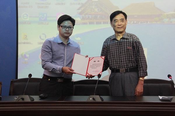 在“闽科讲坛”上,学院院长邱永渠代表学院向赖晓南先生颁发聘书,敦聘赖晓南先生为我院客座教授。