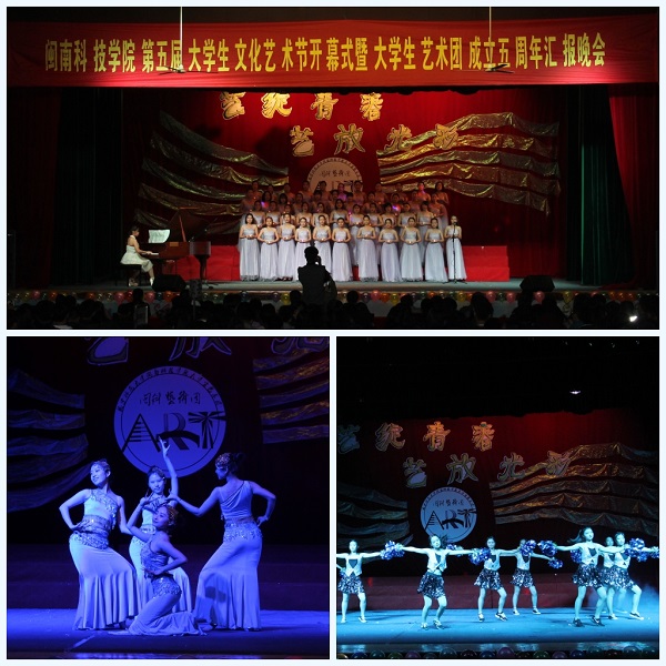12月6日晚,我院举办第五届大学生文化艺术节开幕式暨大学生艺术团成立五周年汇报晚会。院长邱永渠、副院长戴景星,各系、部负责人,师生代表1500余人观看晚会。
