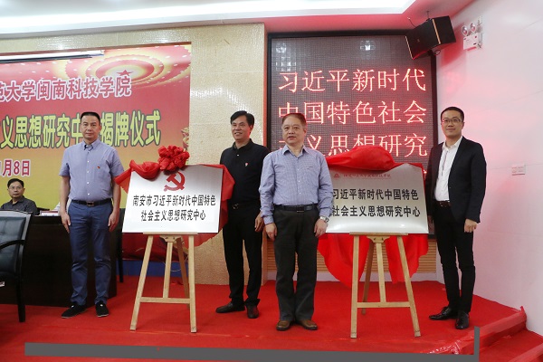 李方祥、吴忠溪、卓庆哲、林明旭分别为“南安市习近平新时代中国特色社会主义思想研究中心”和同时成立的“福建师范大学星空在线平台习近平新时代中国特色社会主义思想研究中心”揭牌。