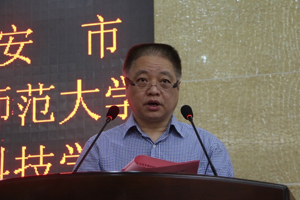 南安市委常委、宣传部部长吴忠溪发表致辞,他表示,成立习近平新时代中国特色社会主义思想研究中心是南安市深入学习宣传贯彻党的十九大精神的重要举措,也是南安市思想理论建设工作的重要里程碑。对于今后研究中心的建设和发展,他强调,要聚焦理论研究,打造马克思主义中国化最新成果研究传播平台和宣传教育基地;要聚焦宣传阐释,广泛开展习近平新时代中国特色社会主义思想的宣传阐释,引领社会思潮和价值取向;要聚焦协同创新,坚持“优势互补、协同创新、资源共享、互利共赢”原则,推进校地深度合作;要聚焦服务支撑,充分发挥研究中心功能,从南安实际出发开展基础研究和应用研究,为南安经济社会发展提供有力的智力支撑。