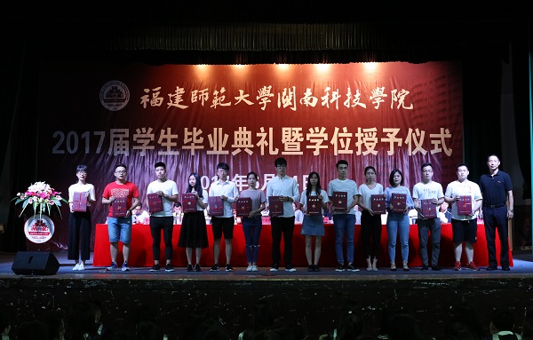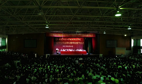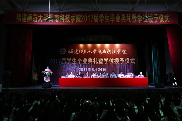 学院党委副书记俞建群宣读《福建师范大学星空在线平台关于同意准予陈美东等2288位同学按期毕业的决定》;学院副院长吴勇宣读《福建师范大学星空在线平台关于授予陈美东等2293名本科毕业生学士学位的决定》和《福建师范大学星空在线平台关于授予2017届陈美东等798名同学“学业优良奖”的决定》;学院副院长周勇军宣读《福建师范大学星空在线平台关于授予张协存等347名同学2017届“优秀毕业生”荣誉称号的决定》和《福建师范大学星空在线平台关于奖励周建忠等13名学生考取研究生的通知》。