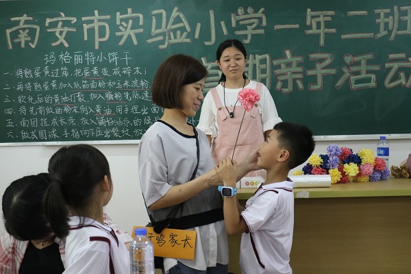 孩子们在大学生志愿者的带领下,参观了校园建筑群,了解了大学的学习、生活情况等,开展了感恩母亲节、亲子互动游戏、包饺子等活动,还一同走进了大学实验室,开展“幸福的味道”主题亲子烘焙活动。在亲子烘焙活动中,几个家庭一组,在大学生志愿者、家长们的指导下,孩子们纷纷揉起了粉,再把揉好的粉搓成各式各样的形状摆上烤盘。当打开烤箱的那一刻,香味四溢,孩子们无与伦比的创造力和想象力让现场气氛充满甜甜的味道,在场人员的脸上溢满了快乐和幸福的笑容。学院浓厚的文化气息、专业的实训条件、志愿者热情的服务给家长、孩子们留下了深刻的印象,优雅的校园环境使大家流连忘返。