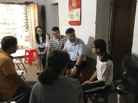 在三明市建宁县濉溪镇,学校校长助理、学工部部长林树生细心询问了2019级国际经济与贸易专业金同学的家庭情况,以及入学后的规划,表示学校不会让一个学生因为家庭经济困难而辍学,并鼓励她克服困难,保持乐观自信,掌握专业知识,提高专业技能,为将来更好的生活打牢基础。
