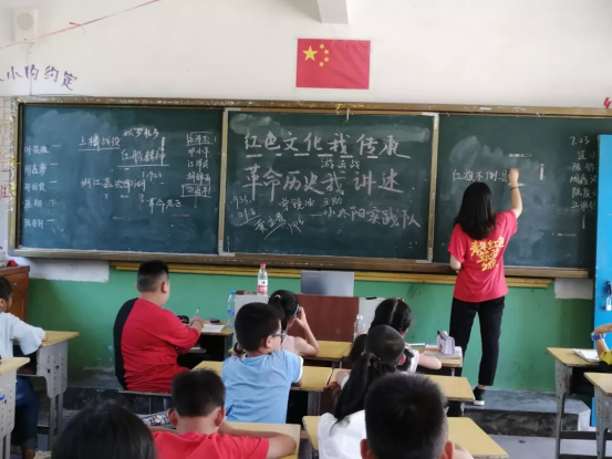 实践队队员在岭下中心小学开展为期一周的支教活动,开设中国诗歌、剪纸技艺、革命经典等各具特色的课程,弘扬中国传统文化和爱国主义精神。