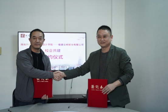 12月25日,艺术设计学院院长杨世强和福建众裕鞋业有限公司法人代表雷东签订合作协议