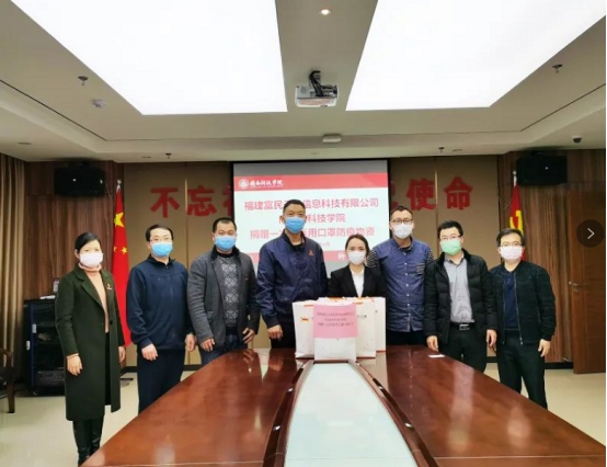 3月4日下午,福建富民云咖信息科技有限公司捐赠防控物资仪式在我校明德楼19楼会议室举行。福建富民云咖信息科技有限公司副总经理魏丽琴、产教融合中心总监郭建忠、项目总监陈建武,校领导吴勇、林树生出席了捐赠仪式。