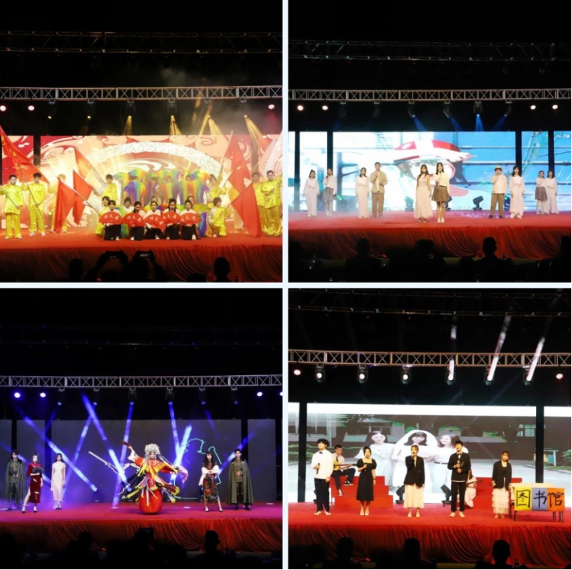 整场晚会持续将近两个小时,上演了“曜曜星辰 莫染初心”“风华正茂 沧笙踏歌”“献礼中国 共谱芳华”三个篇章,节目融合摇滚、舞蹈、歌曲、朗诵、武术、走秀、啦啦操等多种元素,内容丰富、形式多样、高潮迭起,精彩纷呈。其中,尚武社英姿飒爽《舞动青春》拉开晚会序幕;吉他声乐社和生命科学与化学学院一曲《稻香》唱出了青年人面对人生困境仍努力追求人生理想的新时代精神;艺术设计学院和大学生艺术模特队的歌舞和走秀表演,彰显了青年学生勇敢追梦的坚定信念;南安团委青少年宫表演的拉丁舞热情洋溢,演绎了力与美、刚与柔的完美融合;大学生艺术团舞蹈队在霓裳羽衣中翩然起舞,展现中华民族优秀传统文化魅力;商学院以小品形式讲述《最美逆行者》,演绎亲情与责任的伟大抉择;汇声主持社、计算机信息学院声情并茂朗诵《我的国》,表达了对祖国的满腔热爱……此次演出最大的特点是所演节目均为反映青年学生积极向上精神风貌、展现学校各项工作取得的成就、迎接全面建成小康社会胜利的作品,师生们用优美动情的歌声和深切饱满的激情,送来了新的旋律。